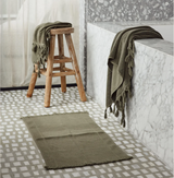 Our Olive Vintage Wash Towel Collection is flat-woven on one side, with a short terry weave on the other.