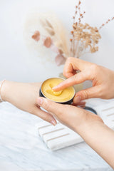 Our Hand and Cuticle Salve has been developed in collaboration with the Luxurious Spa "Plaza M" in NYC. Each ingredient has been carefully selected and our formula has been designed wax-free for easy and uniform application, and more importantly for better skin penetration.