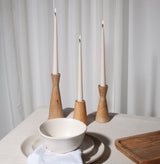 These natural wooden taper candle holders will add a warm, natural touch to your table. Perfect for creating a cosy atmosphere, they come in small, medium, and large sizes to suit any setting.