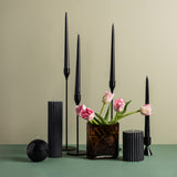 - Packet of 4 black 25cm taper candles