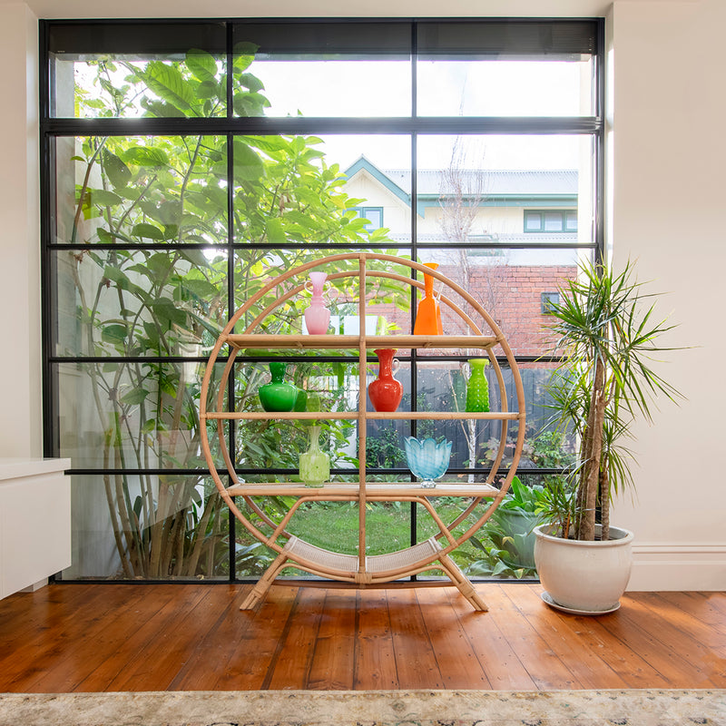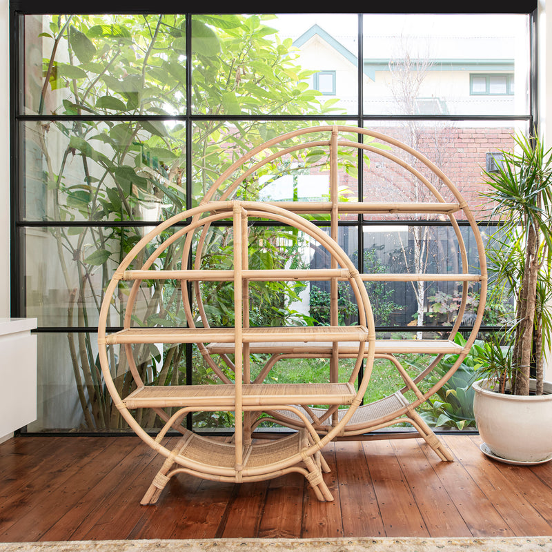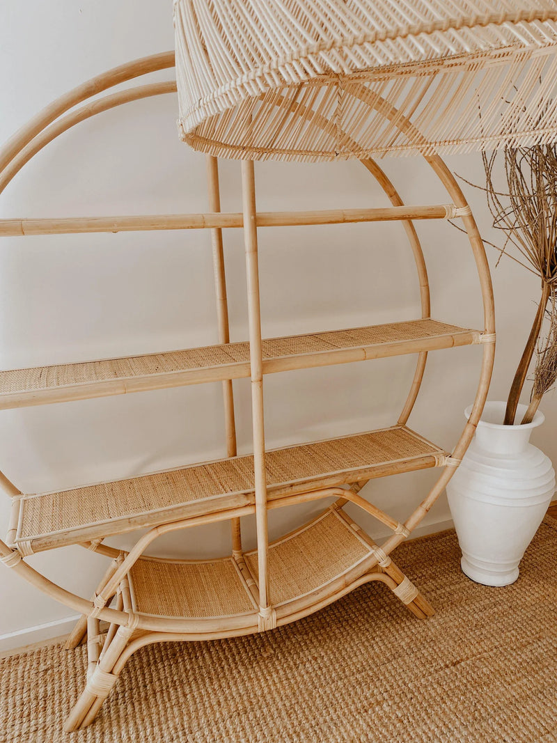 Crafted with an innovative circular shape, this bookshelf is a true masterpiece in design. This unique circular bookshelf serves as a canvas for your creativity, allowing you to artfully display your favourite pieces. Whether it's your collection of literary classics, family heirlooms, exquisite art pieces, or treasured memorabilia, each item finds its special place on this elegant shelf. Its spacious design accommodates a diverse range of objects, giving you the freedom to curate your own personal museum. Elevate your home to new heights of style and functionality with this beautiful bookshelf.
