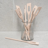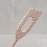 This beechwood mixing utensil provides effortless stirring, allowing for better air circulation, while its angled head prevents sauces from sticking to the pan's bottom.