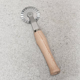Pastry wheel beechwood handle. A practical kitchen tool. Perfect for effortlessly cutting through pastry, this pastry wheel boasts a graceful beechwood handle and a sleek steel ruffle blade.