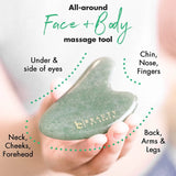 Each gua sha is carved from natural jade, a stone long appreciated for its cooling and calming properties. The smooth shape sits comfortably in your hand and follows the natural contours of your face and neck with ease. Whether part of your morning routine or a quiet moment before bed, this is a tool to return to. Made to last, made to feel good.