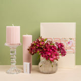- 1 x Antique Pink Fluted Pillar Candle - 5cm x 20cm