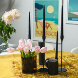 - Packet of 4 black 25cm taper candles