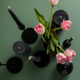 - 4 x black metal taper candle holders in various sizes, the largest being 30cm high