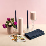 Perfect for creating memorable moments at home or as a complete gift for couples setting up their first home together. This collection combines navy candles with soft antique pink accents and French navy linens for a timeless tablescape designed for two.