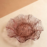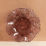 Vintage pressed glass plate with scalloped edge and textured surface. Great as a serving piece or decorative display.26cm