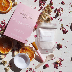 Each Kit Includes Pink Clay Mask powder n(perfect for sensitive skin), Ceramic Bowl, Wooden Spoon, Applicator Brush & Instructions.