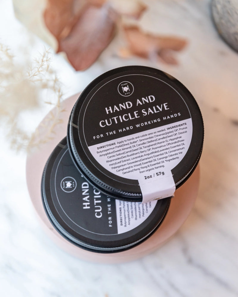 Our Hand and Cuticle Salve has been developed in collaboration with the Luxurious Spa "Plaza M" in NYC. Each ingredient has been carefully selected and our formula has been designed wax-free for easy and uniform application, and more importantly for better skin penetration.