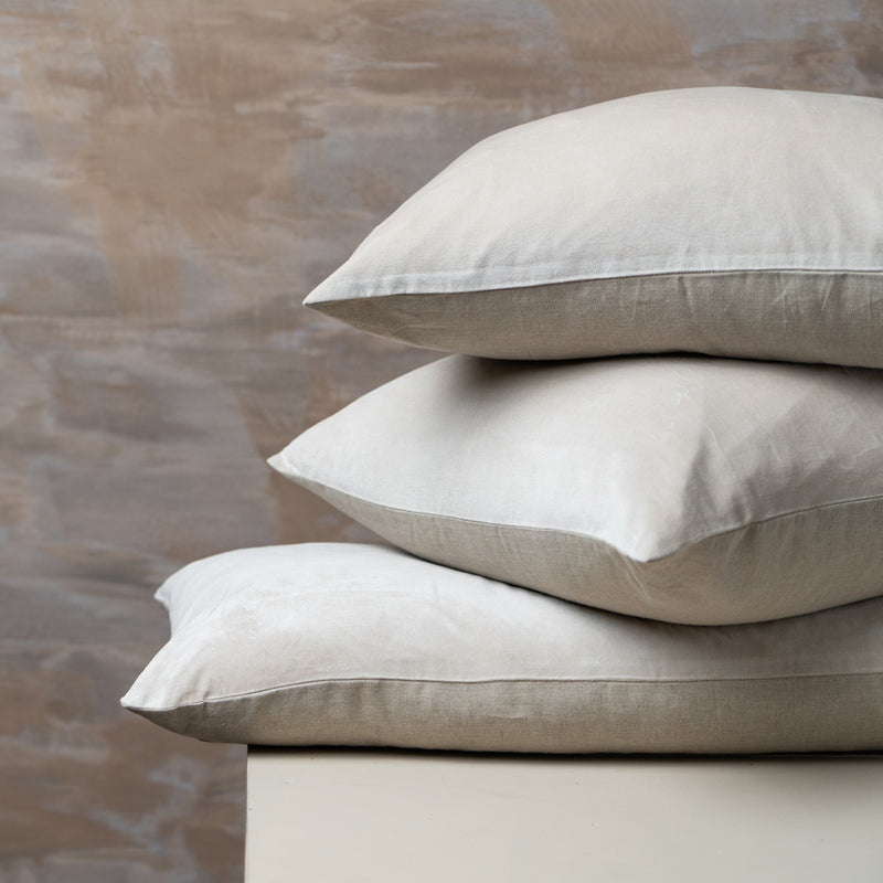 Our Clay Linen/Velvet Square Cushion is super soft, with vintage wash tones and reversible linen backing. These cushions are made for you to snuggle up and relax with!