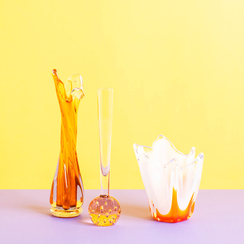 Brighten up your space with this set of 3 orange vintage vases. Bringing 60s and 70s retro charm to your table, shelf, or windowsill, they are perfect for flowers or pretty enough to stand alone.